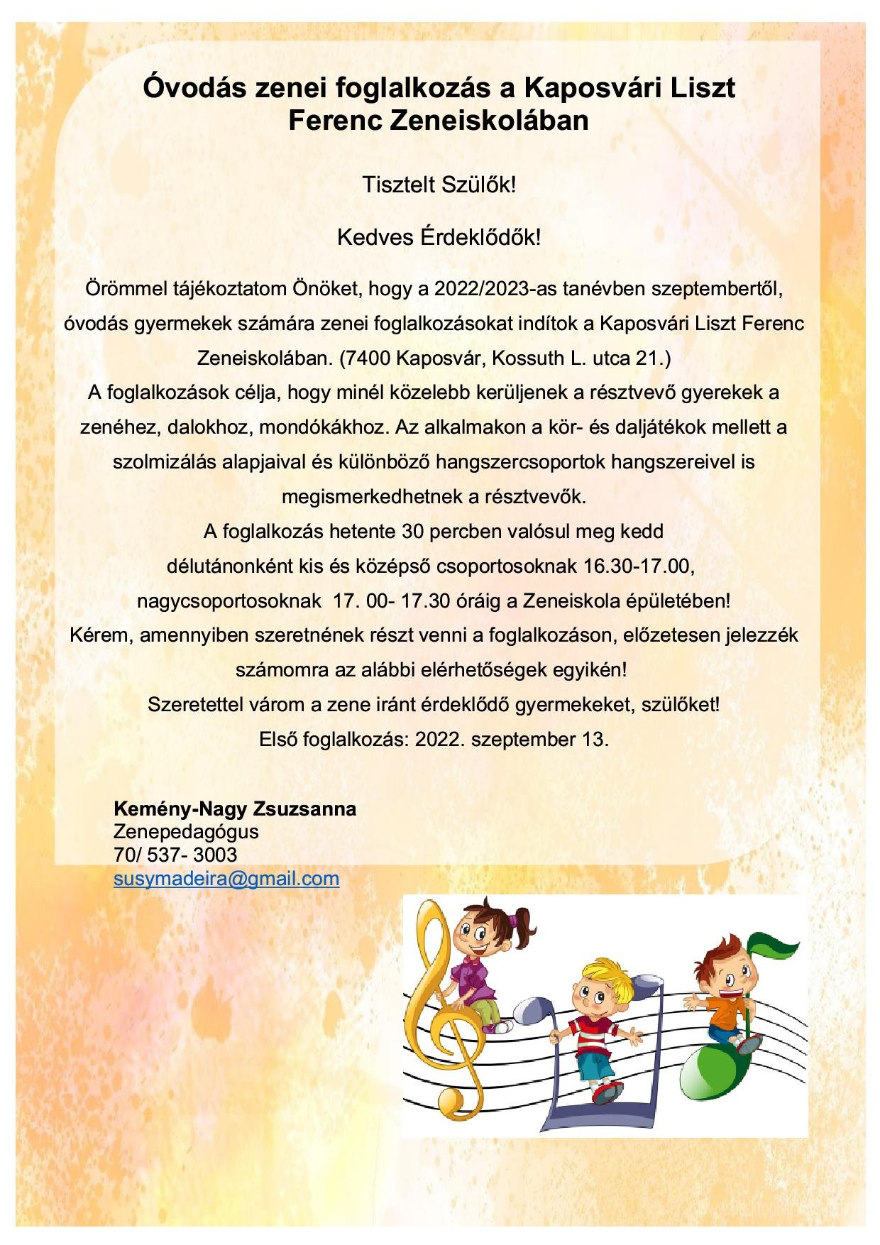KAPOSVÁRI LISZT FERENC ZENEISKOLA - ALAPFOKÚ MŰVÉSZETI ISKOLA